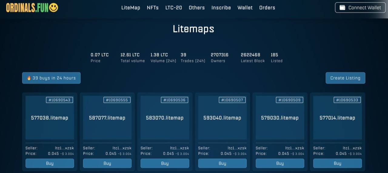 Similar to Magic Eden, a Solana NFT marketplace which launched support for Bitcoin Ordinals in March 2023, Ordinals.fun allows users to create, buy/sell Litecoin Ordinals, leveraging the surging interest.